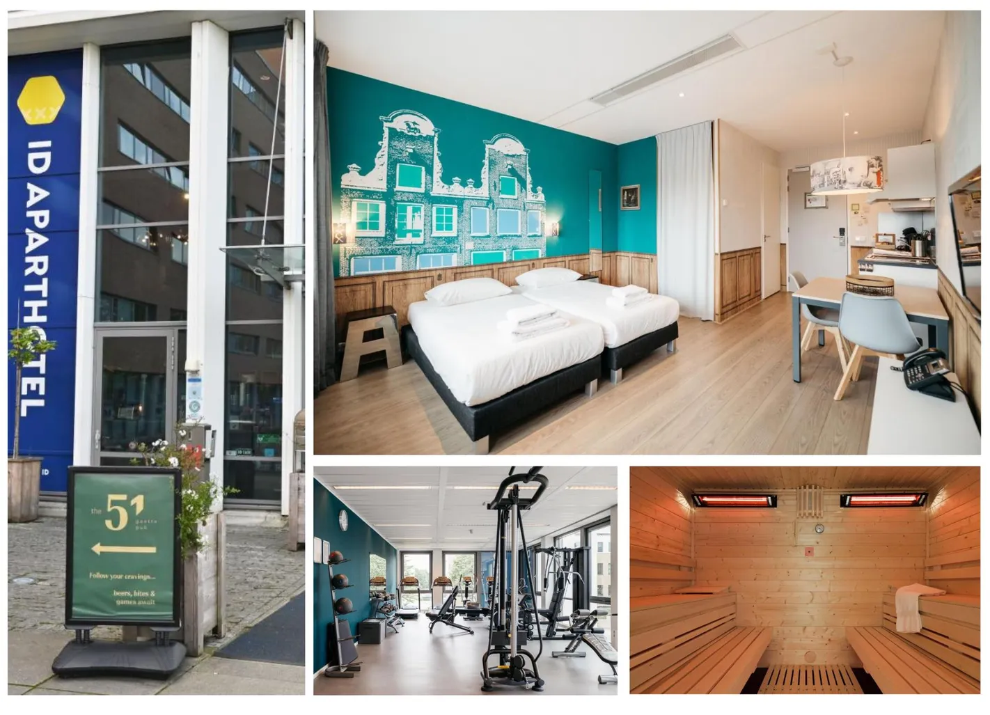 評價非常好的阿姆斯特丹ID公寓飯店,最適合喜歡自煮的旅客來住。除了公寓裏面必備的餐廚具、洗衣機、寬敞舒適的大房間以外,最讚的是它還有健身房和桑拿房!它的地理位置也非常好,距離最近的sloterdijk火車站只要走路6分鐘,車站內就有AH超市,生活機能非常便利。
