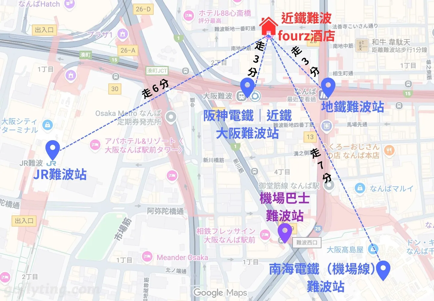 「大阪難波近鐵fourz酒店」離這4個難波站都不遠,算是地理位置超越五顆星、價格又不算貴的絕佳住宿了!
