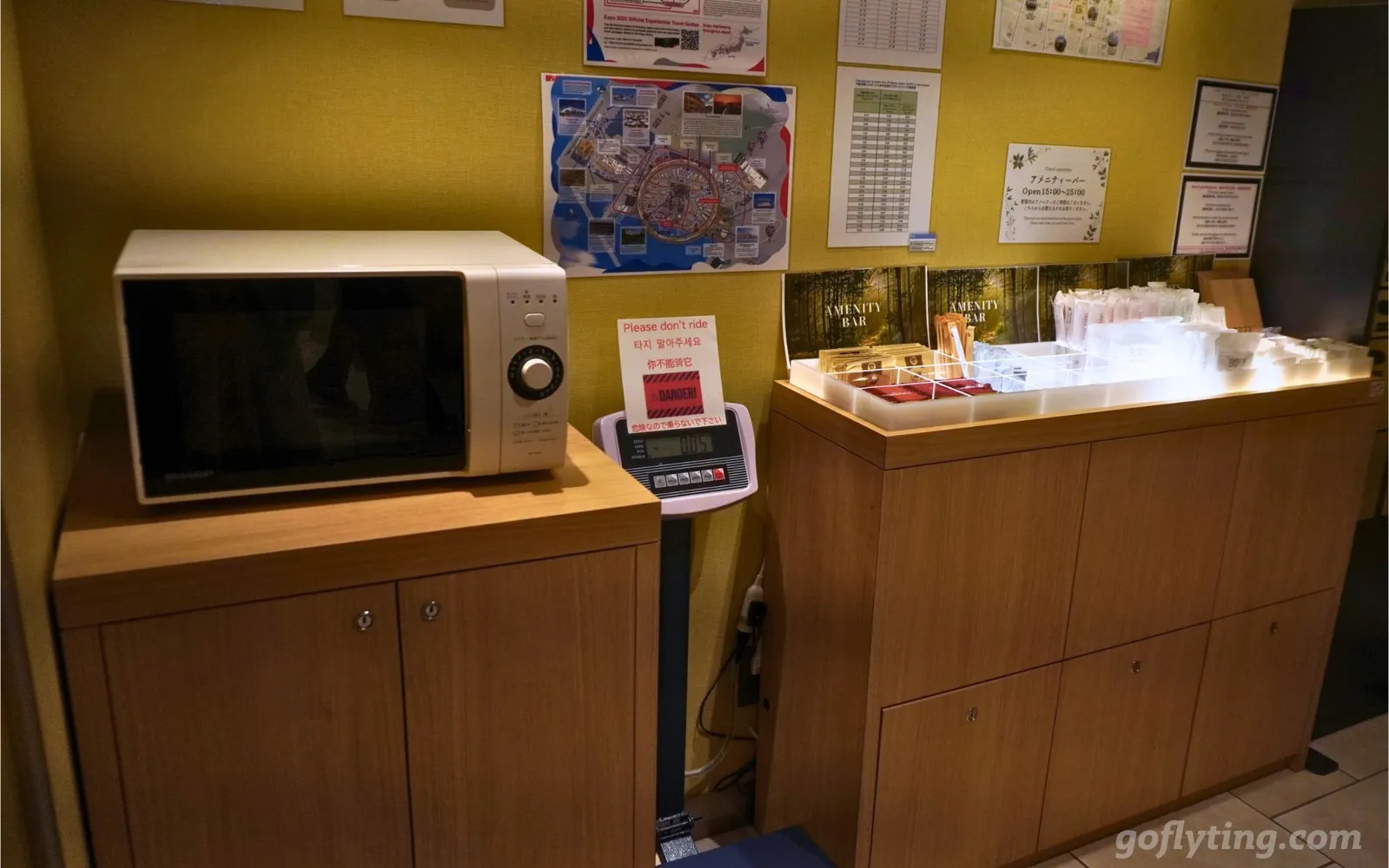 一樓的備品區東西雖然不多,但也算是蠻齊全的,牙刷組、梳子、茶包、咖啡包…都有,對於晚歸的旅客,在超商買微波食品回來微波也很方便。