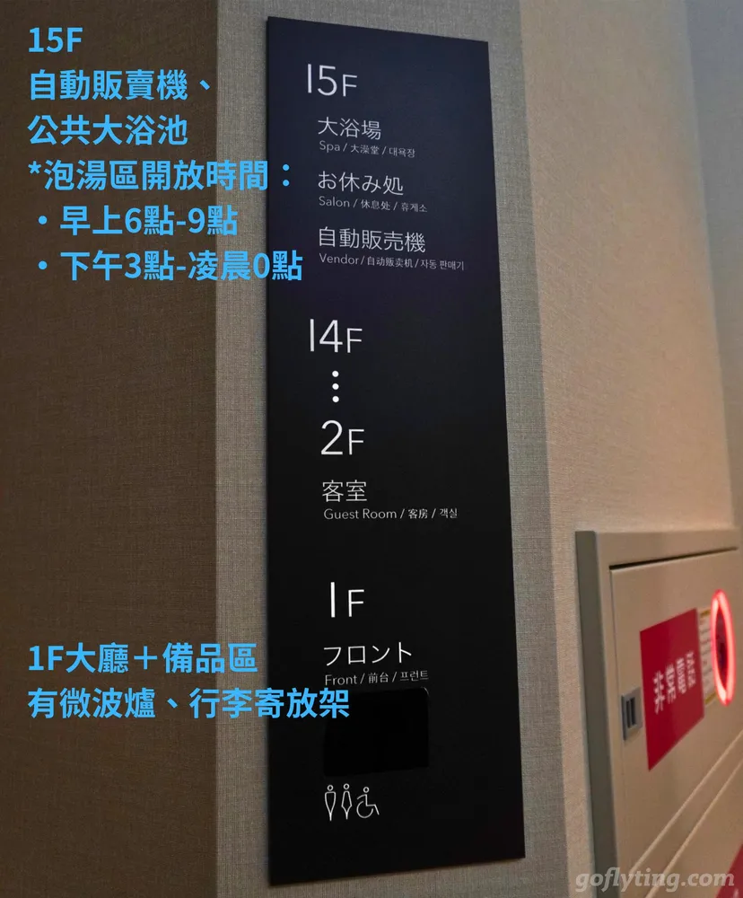 飯店的設施也非常簡單,沒有額外的健身房、會議室等等,就只有客房、1F的備品區、15F的大浴場。